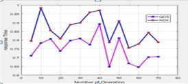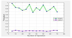 Network Operating System (NOX) management applications are built as a central program in order to engender high caliber relinquishments of network resources in contrast to the algorithms distributed on low-level addresses [23, 24]. The network operating system does not manage the network itself. It provides a programming interface with high calibers of network resources (e.g. recollection, disk storage volume, CPU processing puissance, disk storage volume, link potency, etc.) that enables network application programs to perform involutes tasks safely and efficiently in a wide range of networking technologies [23]. The NOX, however, fails in giving the indispensable functions for QoS-assured Software Defined Networking (SDN) [22, 25, 35] accommodation provisioning on the bearer grade provider internet, such as QoS-vigilant virtual network seating, end-to-end network QoS quantification, and cooperation among control elements in another domain network. Figure 5 shows the graph of the calculation of Response Time and Throughput with NOX [19] of Table 3.