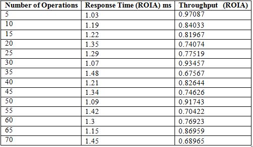 Table 1. Calculation of Response Time and Throughput with ROIA