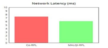 Fig 14. Network latency comparison between MALQI-RPL and Co-RPL