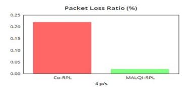 Fig 12. Packet Loss ratio comparison between MALQI-RPL and Co-RPL with 4 p/s data rate