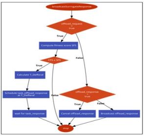 Figure 7 explains the steps taken for sending the task offload response by potential surrogates and how the network scalability is increased by reducing the broadcast storm through mitigating the unnecessary flooding of task response messages by surrogates.