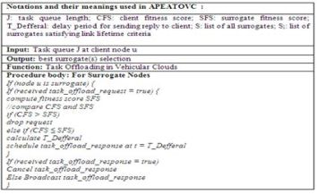 Table 3. Task offloading using APEATOVC, Surrogate part