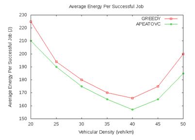 Figure 9. Comparison of Average Energy per Successful Job for varying vehicular densities