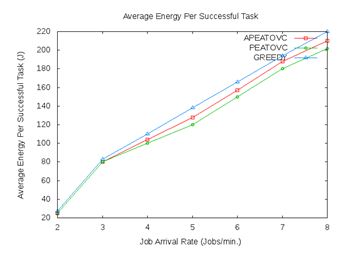 • Average Energy Per Successful Job Execution: It is defined as average energy consumed by Job composed of tasks. It is evaluated for varying vehicular densities and Job arrival rates.