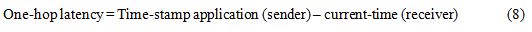 To accurately measure the task transmission time between a client and a surrogate pair we introduce a parameter called the one-hop latency for a node pair. It is measured by the Medium Access Control (MAC) latency of the received message. To find the MAC latency of the received message we log the time at which the application layer inserts a message for transmission in the MAC queue. When this message is received by the receiver we calculate the one-hop latency as