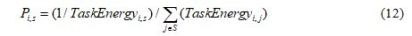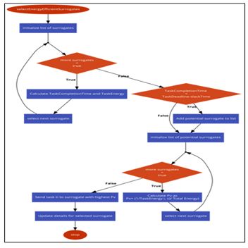 The set of surrogates that satisfy the above equation are termed as potential surrogates and for these the energy requirements are considered. The probability that a potential surrogate with least task energy requirement is chosen is deduced as follows