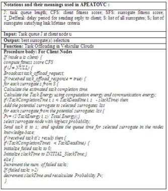 Using the expression to estimate the task completion time a novel task offloading protocol named APEATOVC (Adaptive Probabilistic Energy-Aware Task Offloading in Vehicular Clouds) is proposed as described in detail in the next section. Because the solution to MILP takes non-polynomial time to execute we propose a heuristic for solving it.