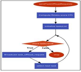 The proposed resource discovery protocol is broadcast protocol to exchange both positional as well as task-related information from the local neighborhood of a node. All nodes participating in task offloading process compute a minimum threshold fitness score which is a function of its computation capacity (measured in million instructions per second i.e., represented by MIPS) and task queue length. The client nodes include it in the sent task offloading request and broadcast it.