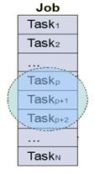 A job is composed of tasks. A client is responsible for maintaining a queue for the generated tasks. The tasks are inserted as they are submitted in FCFS order. Each task in the task queue at the client node is denoted by triplet <Tid, Td, C>
