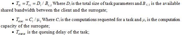 • The task completion time is dominated by the task execution time and the task queuing delay. It can be minimized by selecting surrogates with high computation capacity and with the least queuing delay.
