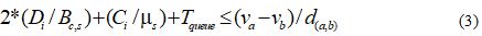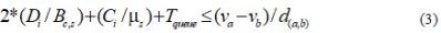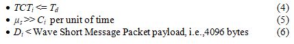 Constraint (4) is necessary for a task to be successfully offloaded to meet its deadline. Otherwise, it is considered failed. Constraint (5) ensures that a task is always executed at a surrogate with high computation capacity. Constraint (6) states that the task-related data being sent is within the bounds of the Wave Short Message Packet payload [4]. Constraint (7) and Constraint (8) ensures that the selected surrogates offer enhanced link lifetime and reliable task transmission. The equation has three components. (a) a task communication time component, (b) a task computation/ execution time component and (c) a link lifetime component