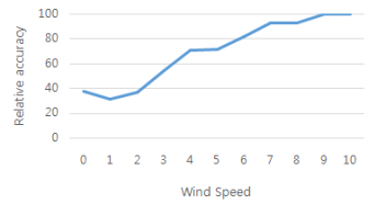 Figure 11. Prediction accuracy of the neural network model by wind velocity.