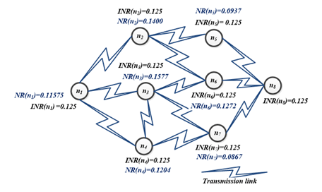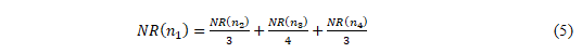 The NR valueand link values of related neighbor node are substituted in equation 4 which generates the NR value for node n1.