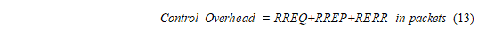Control overhead: The sum of the number of RREQ, RREP and RERR as in equation 13.