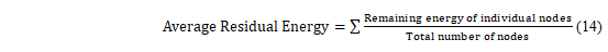 Average Residual Energy: It is taken as the average of the residual energy levels of all the nodes in the network as in equation 14.