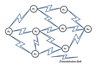 Energy Efficient Node Rank-based Routing (EENRR) algorithm is proposed to increase Network Life Time (NLT) and Packet Delivery Ratio (PDR). In this algorithm, NLT of the nodes in the network is increased by choosing energy efficient path and PDR is increased by choosing minimal traffic root from source to destination nodes [27]. This improvement in NLT and PDR is achieved using Node Rank (NR) technique in EENRR algorithm [28]. Node Rank is evaluated based on the number of links connected to the node and the total number of nodes in the network. The DSR protocol is enhanced by modifying the route discovery but the route maintenance is essentially the same. Route selection is performed by choosing energy efficient path and less traffic routes by the source node using NR. Major part of the proposed EENRR algorithm concentrates in predicting the Node Rank which is described below. For an example figure 1 represents the sample for routing architecture, which acts as a base for evaluating the node rank