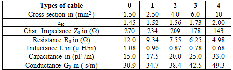 Table 1. shows the characteristics parameters estimated for different cables of network