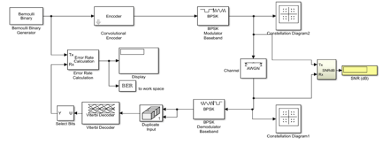 In this segment, we present numerical simulation results that show the system error performance of the proposed powerline communication networks. The theoretical and calculated signal to noise ratio (SNR) and bit error rate (BER) of the proposed powerline channel under BPSK and QPSK, the curve is drawn using ‘bertool’ in MATLAB for AWGN environment. In both the scheme, an improvement in BER has been observed. QPSK scheme is always preferred to BPSK in multipath fading channels. Figure (8) below presents BER and SNR performance curve in the AWGN channel.