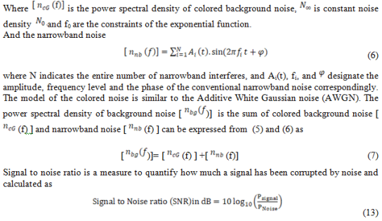 In the Broadband powerline communication environment, signal distortion is expressed not only by channel transfer function H(f), but noise play an important role in it. As the noise signal is produced by interferences and inhabits part of the frequency band. The short wave communications generate noise and may affect the powerline communications.