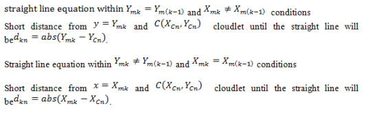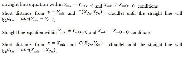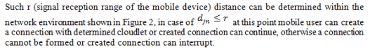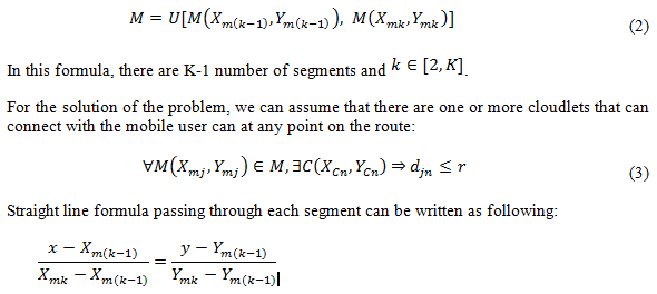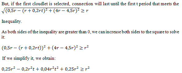 After the value of t, which is the solution of this in quality, connection is disrupted and new cloudlets must be found. The point which is relevant to the shown value of is located at the first part of the route (Figure 3).