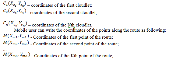 Coordinates of the cloudlets located in the wireless metropolitan area can be written as following: