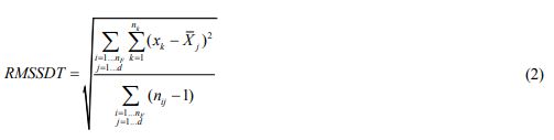 One of the most popular indicators for determining the optimal number of clusters is the Root Mean Square Standard Deviation (RMSSDT). Although this criterion is usually used in the validation of hierarchical algorithms, it also has the ability to evaluate the results of other clustering techniques. In the RMSSDT, the variance of clusters is used, which can be calculated using equation (2).