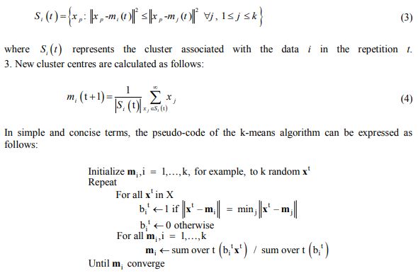 The goal of the clustering of the k-means algorithm is to determine the cluster centres to be selected in such a way as to minimize the intra cluster distance, as well as the clusters have a highest distance from each other.