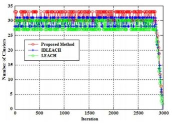 Figure 16. The number of cluster heads at 300 nodes in 3000 rounds