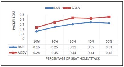 Figure 12. Packet loss of the protocols under grey-hole attack
