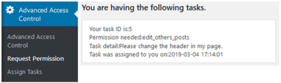 Based on section 4, a WordPress Plug-in Prototype implemented based on general WordPress Application. This prototype for WordPress Plug-in is named as Advanced Access Control. These plug-in helps users to assign permissions, request permissions and block suspicious requests based on user behaviours.