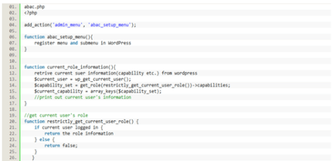 In Figure 15, it is a screenshot of the abac.php file, it was used to register the plugin with original WordPress system.