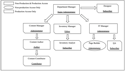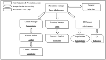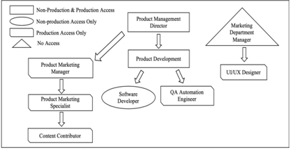 Figure 5a is an inverted tree that illustrates the Department Structure of Bata Style Websites [25]. For example, Department Manager and IT Manager have access in Non-Production and Production environment. Page Builder only has access to Non- Production environment. And all other roles have permissions in the production environment.