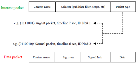 In this section, we make some changes in the interest and data packets structure of CCN in order to support emerging applications of IoT. In CCN, different traffics have different requirements based on the applications. Our focus is on the emergency applications which need support for both high reliability of packets transmission and low end to end delay to ensure that the emergency calls arrive as fast as possible.