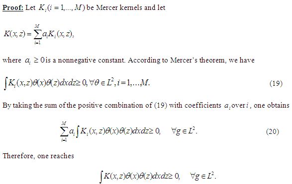 Theorem 3: A kernel is a valid SVM kernel; if it satisfies the Mercer Conditions [29].