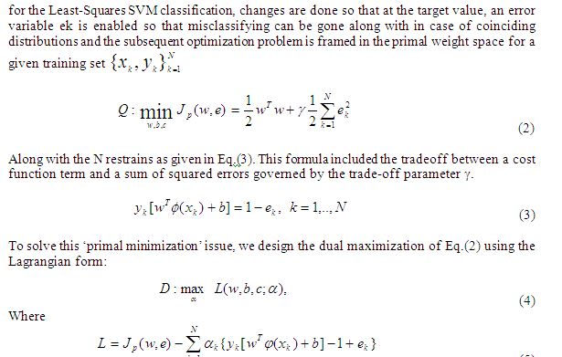 The multi-class problem is described as the categorizing problem that has numerous classes. To prolong these classifiers to take care of many classes, the target of this method is to map the generalization capabilities of the binary classifiers to the multi-class domain. Multi-class SVMs are ordinarily applied by mixing a couple of two class SVMs. In multi-class experimentations, we have trained SVM for every class individually so that one is against all. In every experiment, we utilized the SVM toolbox accessible at [32]. The multi-class problem is described as a classification problem which has numerous classes or characters. Current SVMs [24] are binary classifiers, i.e., they could categorize two classes. To be capable of dealing with various classes (greater than 2), the current classifiers should be prolonged. The target is to depict the generalization abilities of the binary classifiers to the multi-class domain. Multi-class SVMs are usually applied by merging several two – class SVMs. The classifier is constructed to read two input data files, the training data and the test data (for more details see [11, 18]). Every file is