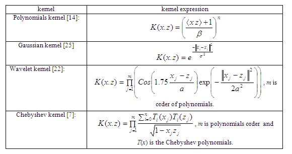 The problems of data classification remain in picking the most convenient kernel of SVMs for a specific application, specifically since various functions and parameters can have vastly different operations [19-22]. A vital research field in SVMs is to establish an effective kernel function for constructing SVMs in a particular application, specifically because of variable current application which will demand various methods [22].
