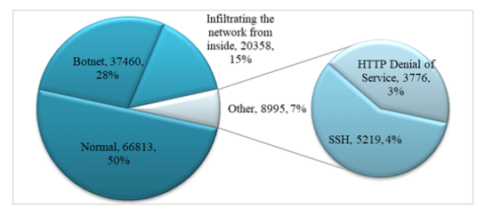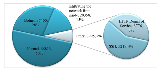 Figure 1The records distribution of the UNB ISCX 2012dataset to build the experiments.