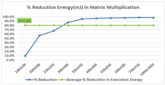 Figure 14. Reduction percentage in energy in matrix multiplication