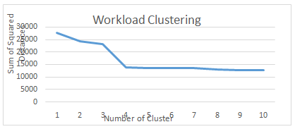 K-mean is a well-known unsupervised learning algorithm. The k-Means method allocates N data points to k diverse clusters, such that the clusters number needs to know a priori. This paper uses the K-means for clustering the size of workload requested. The objective from the workload cluster is simulated the real number of VM type requested by users. A different number of clusters are tested starting from 1 to 10. A heuristic approach is applied to determine the best number of clusters. The heuristic approach is called the Sum of Squared Distances (SSD). SSD represents the sum squares of the distance between points and cluster center [35]. The low values of SSD refer to that the cluster is coherent. Figure 2 shows the relation between SSD and the number of clusters. Form figure 2, it clears that the best number of clusters is 4.