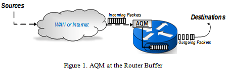 Active Queue Management (AQM) methods are responsible for managing the router buffer and avoid congestion and its consequences, which are the increment of the packet loss and the decrement of the throughput (Figure 1). Buffer congestion occurswhen the amount of the transferred data exceeds the capacity of the buffer. Because congestion has terrible consequences on the network performance, various AQM methods were proposed in the literature, each of which has a specific target in defeating one of these consequences. Random Early Detection (RED) is the first AQM method, which was proposed to overcome the limitation of the passive approach that was used to manage the buffer, which is called a tail drop [1-3].