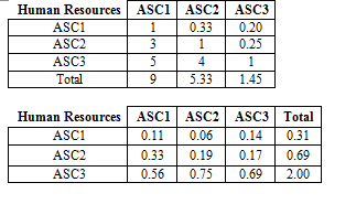 Table 5. ASC vs. ASC comparison matrix, normalized matrix, and weight vector for QEC Human ..