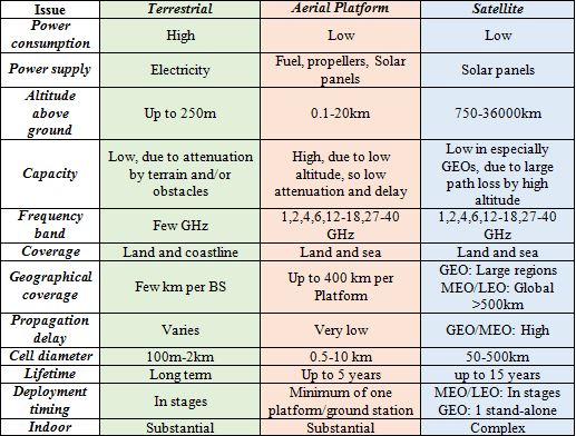 Table 4: Comprehensive Comparison between terrestrial, aerial platforms, and satellite systems.