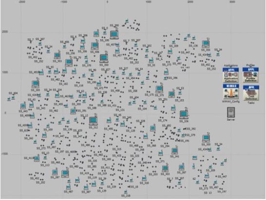 Fig.3: OPNET simulator of WiMAX network with mobile nodes.