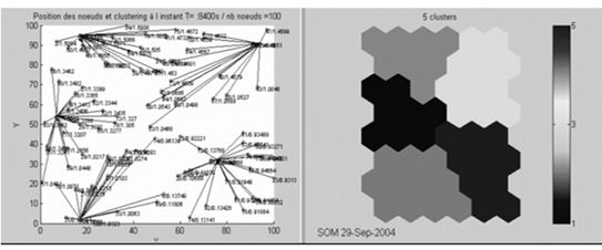 Figure 5.Visualization of the state of the network of sensors and the segmentation of the topological chart of Kohonen T = 8400s [1]