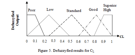 In the present model, four inputs were given to the fuzzy system and five levels of confidence were obtained varying from 0 to 1. Here 0 indicates poor CL while 1 indicates superior high CL. In between poor and superior high another three levels of CL were obtained that is a low standard and good. The collection of LF sends the CL of the route is given by