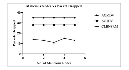 In the present study number of performance, matrices is analyzed for AOMDV, AOTDV, and CLBNSRM and represented in graphs. Performance matrices like Packet delivery ratio, Number of packets dropped, Throughput and Residual energy is considered. These performance matrices also corresponded with various attributes like the number of nodes, node speed and number of malicious node variation.