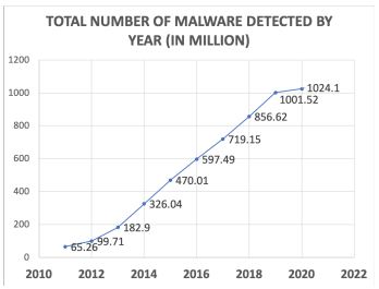 Malware comes in a wide range of variations like Virus, Worm, Trojan-horse, Rootkit, Backdoor, Botnet, Spyware, Adware etc. These classes of malware are not mutually exclusive meaning thereby that a particular malware may reveal the characteristics of multiple classes at the same time. In order to evade detection, malware authors introduce polymorphism to the malicious components. This means that malicious files belonging to the same malware “family”, with the same forms of malicious behavior, are constantly modified and/or obfuscated using various tactics, such that they look like many different files. Malware is one of the most terrible and major security threats facing the Internet today. According to a survey [5], conducted by Symantec in February 2019, 47% of the organizations experienced malware security incidents/network breaches in the past one year, as depicted in figures 1 and 2. The malware is continuously growing in volume (growing threat landscape), variety (innovative malicious methods) and velocity (fluidity of threats).