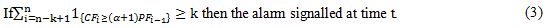 In this equation, k is the parameter that indicates the number of consecutive intervals the threshold must be violated for alarm to be raised, k > 1.
