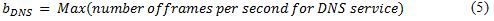 Similar to the Web service, the baseline traffic of other TCP services such as FTP, and mail are identified. For the UDP services, the baseline traffic for the DNS service is identified as the maximum number of frames per second from the DNS event information as shown in equation (5).