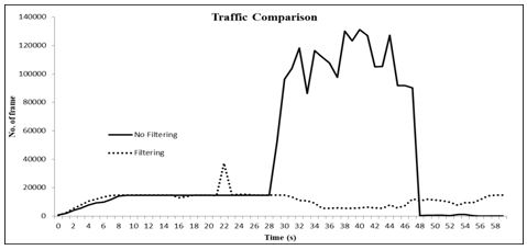 In order to take into account the equal amount of current incoming frames and the average number of previous frames when calculating the average number of frames for the next time, the factor parameter of EWMA formula is identified as 0.5. Moreover, the percentage parameter inequation (1) is defined as 1 for doubling or taking twice the previous number of frames (i.e. EWMA result)which is to be used as a threshold in the process of frame comparing. As both the dynamic calculation methods (i.e. ATA and MATA) are based on the EWMA formula, they raise a high number of false alarms and must avoid them.